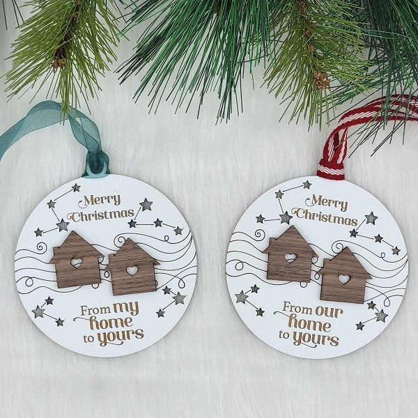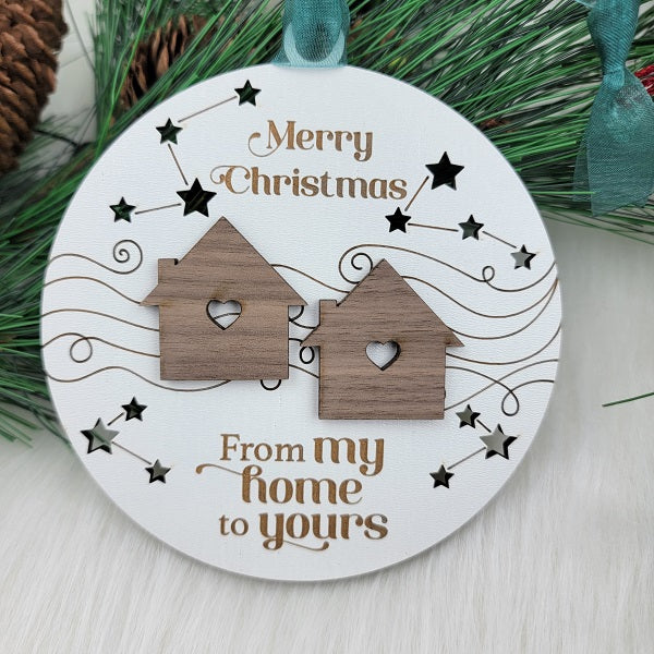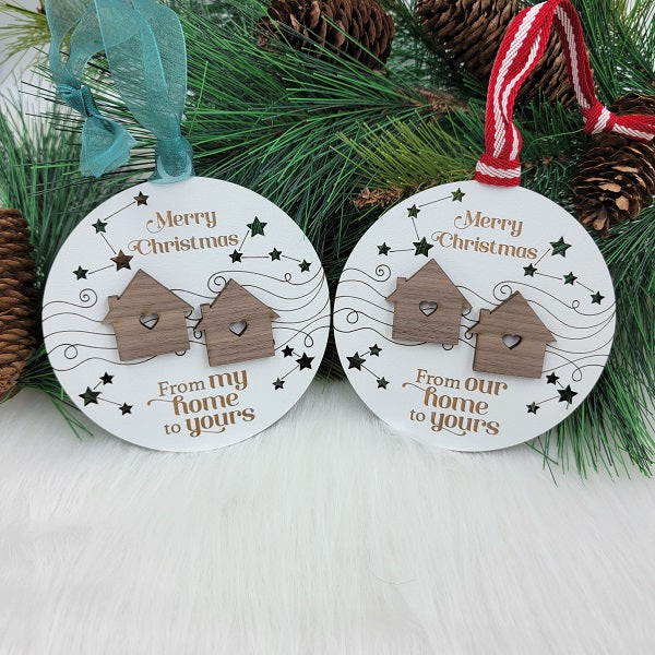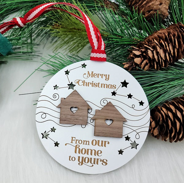 From our home to yours! You can customize this ornament to say "our" or "my." It's perfect for parents, grandparents, friends and family and even those hard to buy for people in your life such as the mail carrier and insurance agents. The ornament arrives ready to hang for easy holiday decorating.