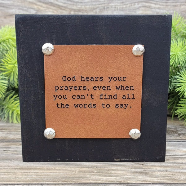 Our rustic shelf sitters are made from our extra board cuts, making each one unique! We stain, seal and then apply an engraved, vegan leather, patch. All sayings are meant to inspire and/or motivate, which makes your block perfect to display in the rooms you spend the most time in!
