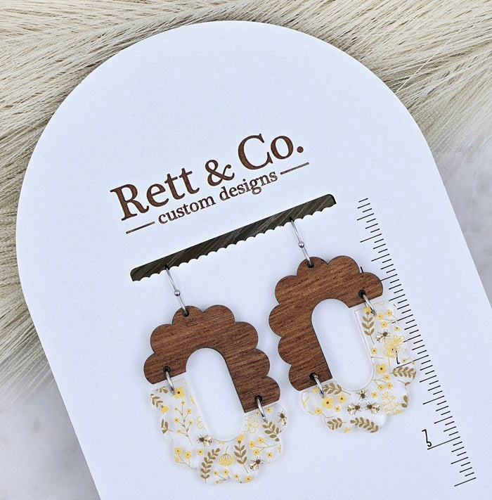- Earring Material: acrylic, cherry and /or sapele wood.