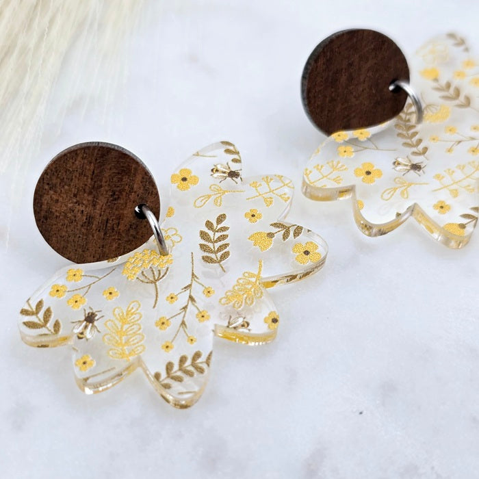Earrings inspired by nature’s beauty. Bring the warmth of the meadow to your everyday style with our lightweight earrings. From buzzing bees to timeless wood designs, each piece is crafted to add a touch of sunshine and charm to your look.