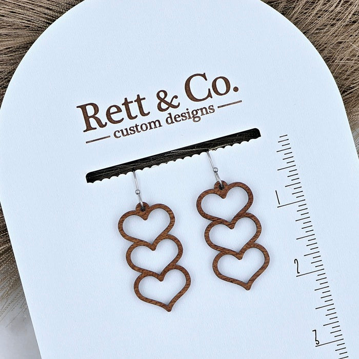 Our laser-cut wood earrings are a stylish accessory for any occasion. We nestle each pair in between our larger cuts so that less wood ends up in the landfill. Having sensitive ears, we only use the best of ear wires for our earrings.