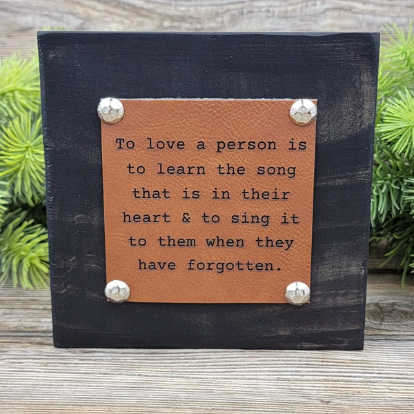 Our rustic shelf sitters are made from our extra board cuts, making each one unique! We stain, seal and then apply an engraved, vegan leather, patch. All sayings are meant to inspire and/or motivate, which makes your block perfect to display in the rooms you spend the most time in!
