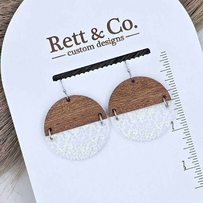 These charming earrings with a white lace pattern on the bottom are the perfect accessory when dressing up or down! Grab a pair today and get ready to stand out!